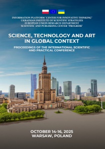 INFORMATION PLATFORM "CENTER FOR INNOVATIVE THINKING" UKRAINIAN INSTITUTE OF SCIENTIFIC STRATEGIES EUROPEAN UNION RESEARCH DEPARTMENT SCIENTIFIC AND PUBLISHING CENTER "PROGRESS" SCIENCE, TECHNOLOGY AND ART IN GLOBAL CONTEXT PROCEEDINGS OF THE INTERNATIONAL SCIENTIFIC AND PRACTICAL CONFERENCE OCTOBER 14-16, 2025 WARSAW, POLAND