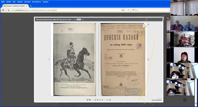 Під час онлайн-спілкування представники організацій-партнерів проєкту, співробітники бібліотек, викладачі вищих навчальних закладів та краєзнавці мали можливість познайомитися зі структурою вебсайту та його наповненням. Детально про архівні та музейні матеріали розповіли старший науковий співробітник Миколаївського обласного краєзнавчого музею І.І. Александренко, начальник відділу інформації та використання документів Державного архіву Миколаївської області М.О. Мельник. Також перед учасниками онлайн-презентації виступили члени громадської організації «Українське товариство «Просвіта» Миколаївщини», праці яких значно збагатили вебресурс: вчений-філолог, кандидат філологічних наук І.Ю. Береза, письменниця, журналістка, голова Миколаївської обласної організації Національної спілки письменників України В.І. Марущак.