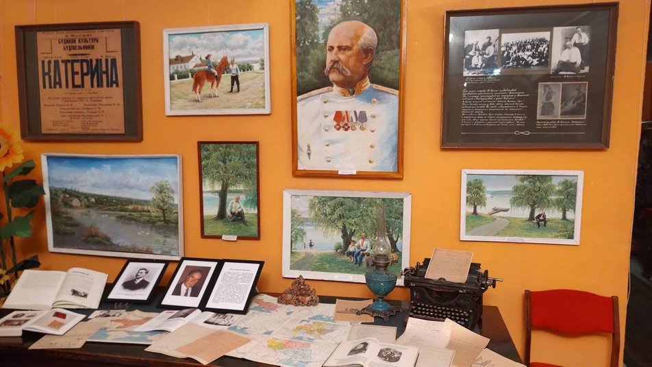 Виставкова експозиція, присвячена Миколі Аркасу. Баштанський краєзнавчий музей, квітень 2023 року. Фото: Ганна Требух