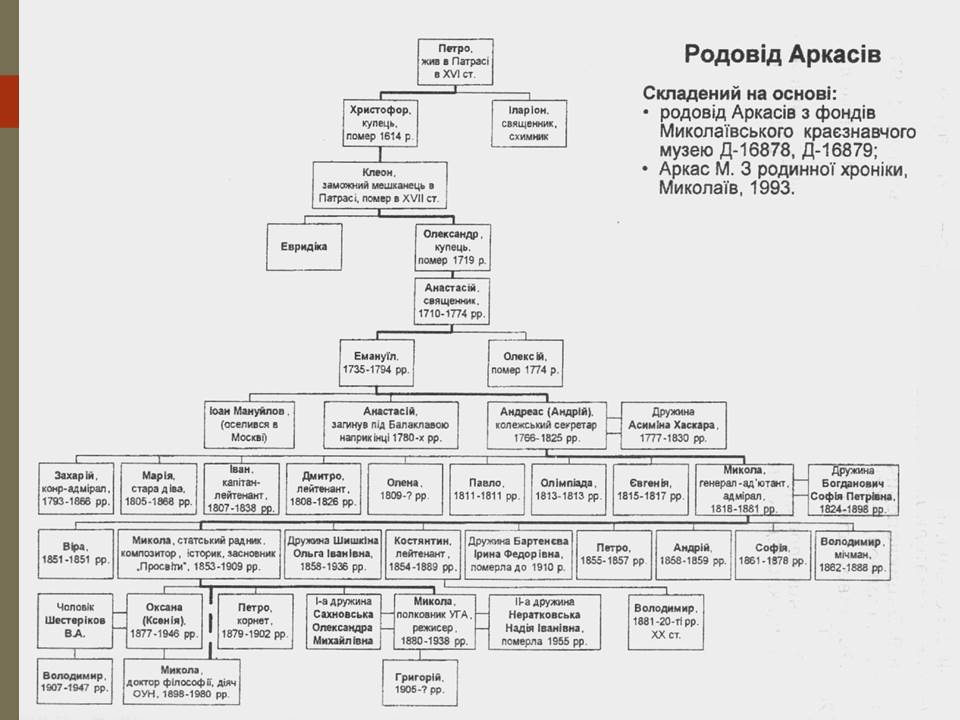 «Рід Аркасів можна назвати феноменальним родом. П’ять його поколінь було репрезентовано творчими особистостями, які внесли вагомий вклад в культурний розвиток України.»