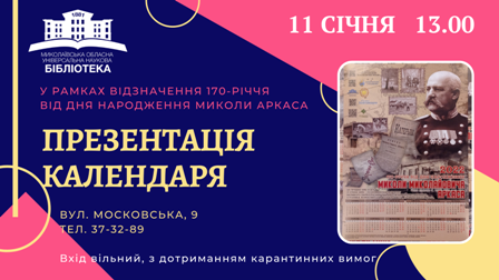 7 січня 1853 року народився Микола Миколайович Аркас, український культурно-освітній діяч, письменник, композитор, історик. Один із засновників і незмінний голова «Просвіти» в Миколаєві. Ім’я нашого видатного земля носить Перша українська гімназія. Традиційно в нашому закладі проходять різноманітні заходи.